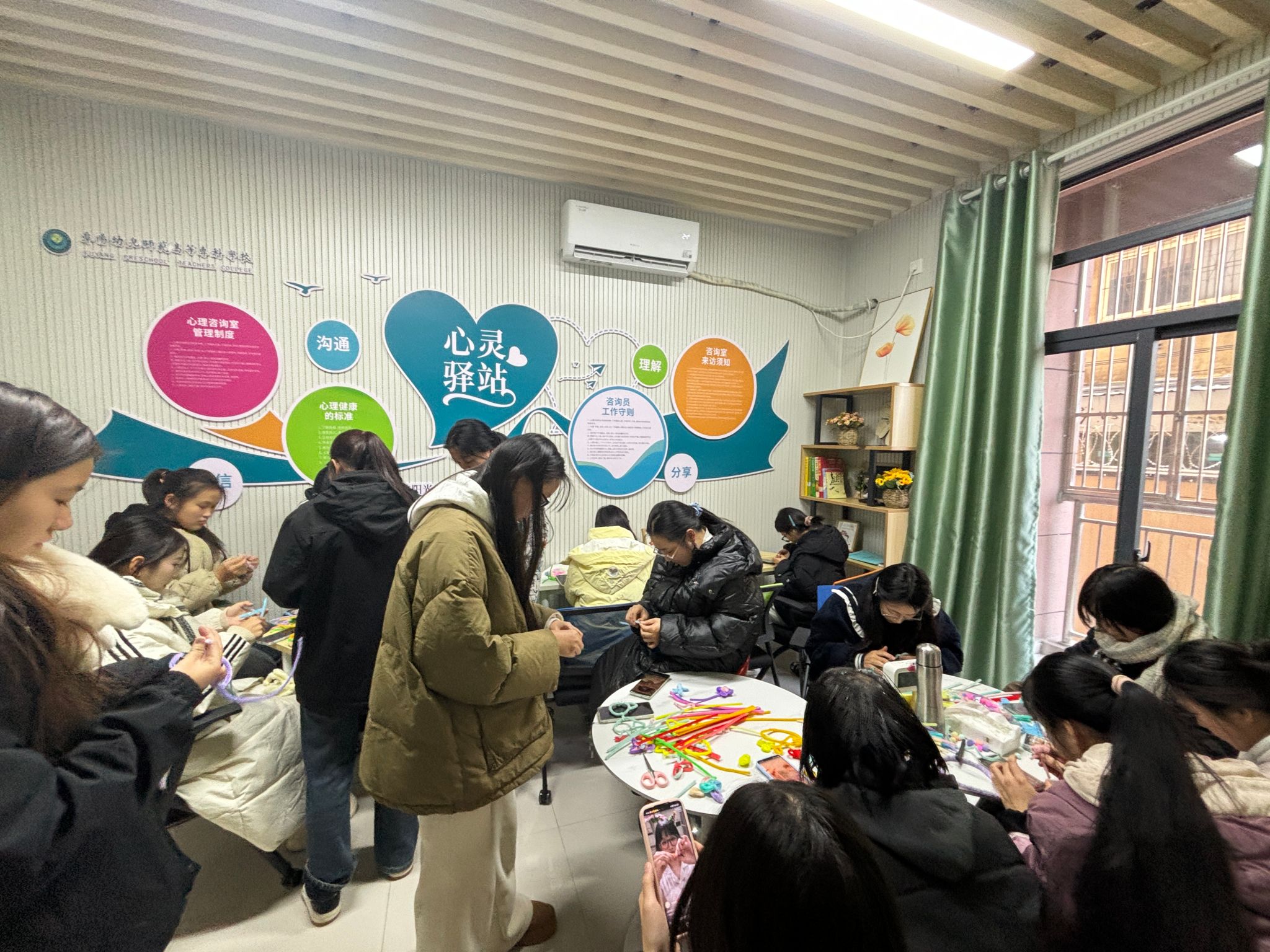 2024年12月13日下午“一站式”学生社区心理辅导站举办“巧手暖心”扭扭棒手工活动。