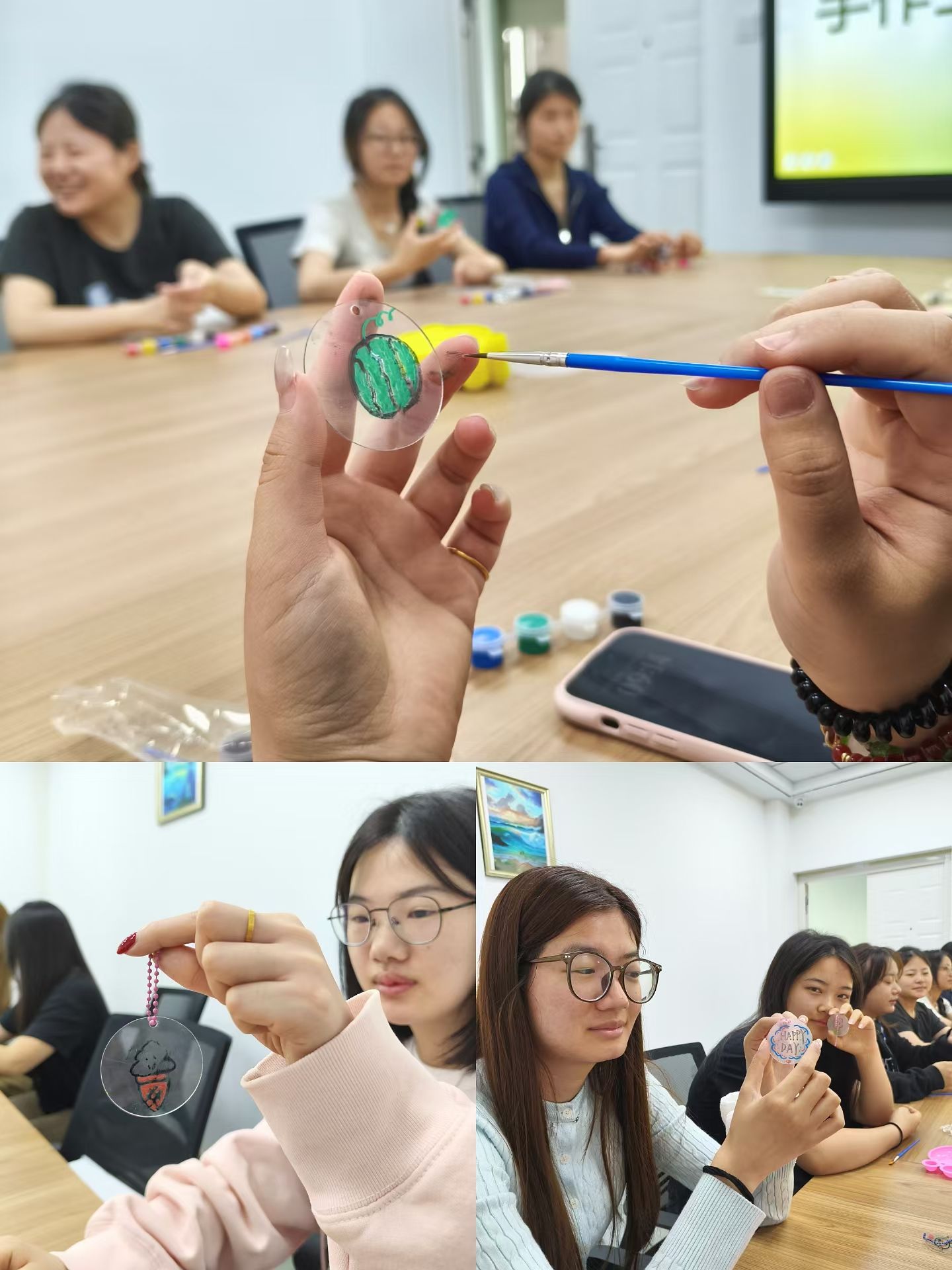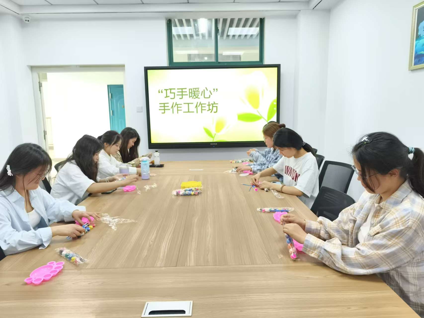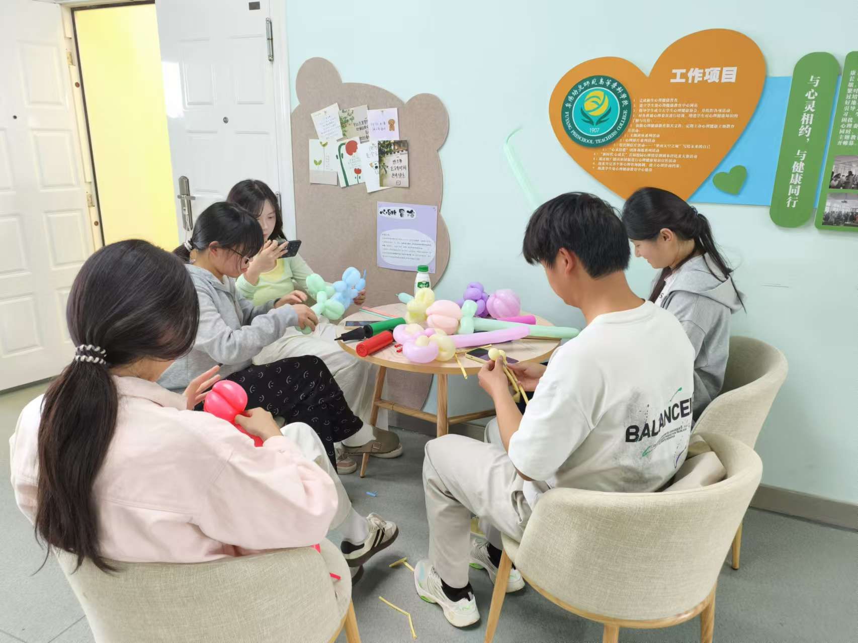最后,同学们在“暖手巧心”环节进行了各类手工制作,如“打气球”、“气球花”“花样圆盘制作”等,在在制作过程中,同学们互相交流、分享经验,不仅提高了自己的动手能力,还增进了彼此之间的友谊,大家一边做着手工,一边倾诉着学习和生活中的压力与烦恼,在轻松愉快的氛围中释放了内心的负面情绪。