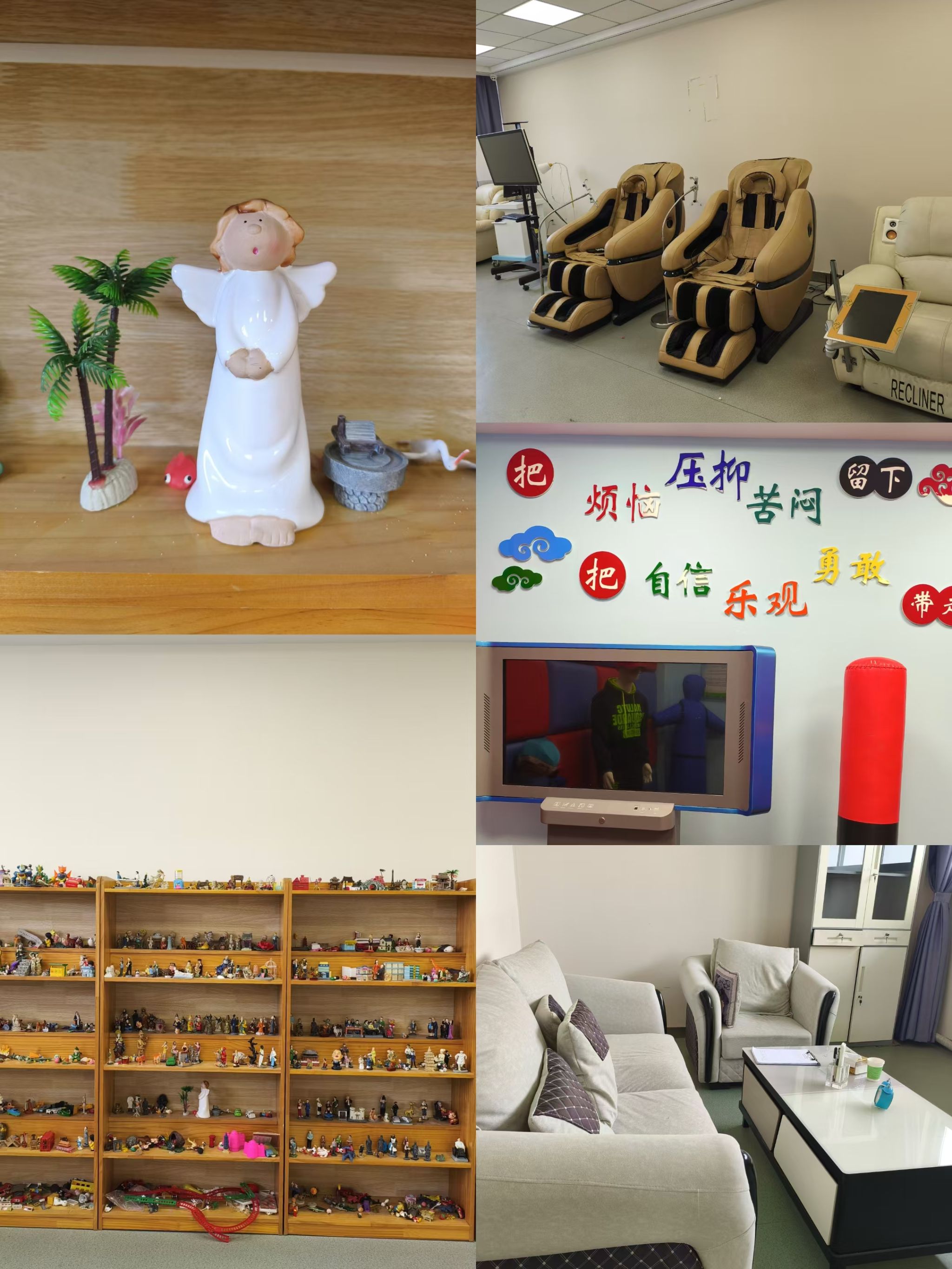 活动当天,同学们纷纷进入“个体咨询室”、“团体沙盘室”、“放松室”、“宣泄室”进行体验,在“个体咨询室”了解心理咨询相关知识,在“团体沙盘室”,用沙盘道具表达内心情感,在“宣泄室”通过呐喊、击打假人等宣泄负面情绪,在“放松室”按摩身体,放松身心。