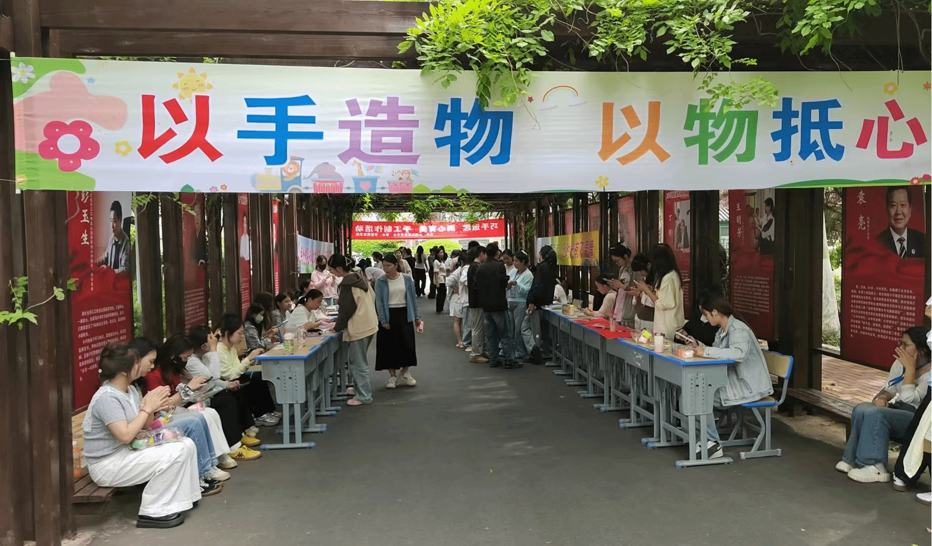 为帮助学生在快节奏的学习生活中缓解情绪压力、培养积极心态,充分发挥美育在心理健康中的重要作用,4月29日下午,由学生处心理健康教育中心主办、学前教育学院承办的“巧手造趣,润心育美”手工制作活动在行知楼北文化长廊顺利开展。本次活动有200余名在校学生报名参加。