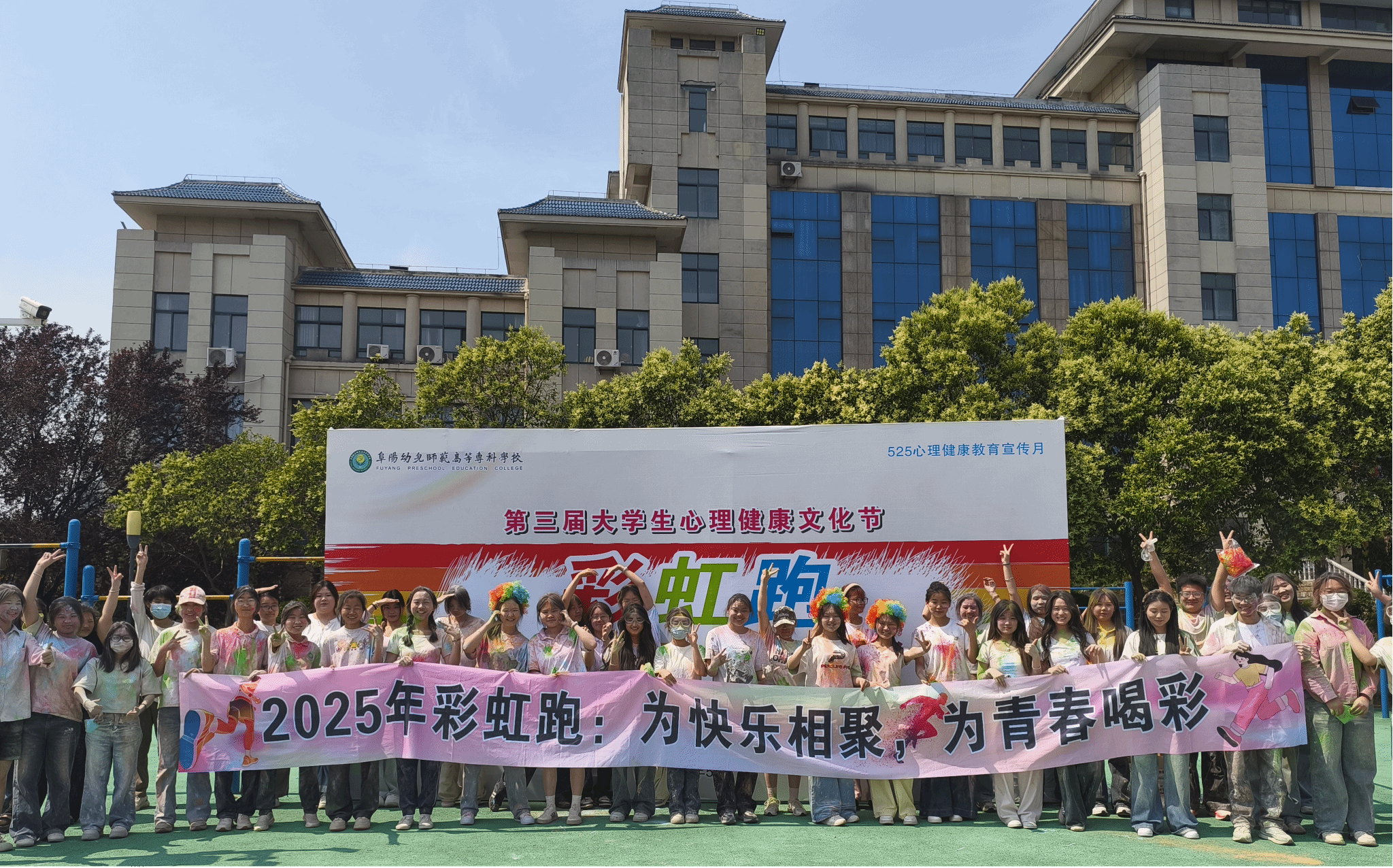 为响应"5·25"心理健康教育主题,倡导学生关注自我、悦纳自我,培养积极向上的心理品质,5月25日,学校心理健康教育中心在校园内举办"为快乐相聚,为青春喝彩"校园彩虹跑活动,通过色彩与活力的碰撞,传递心理健康正能量。