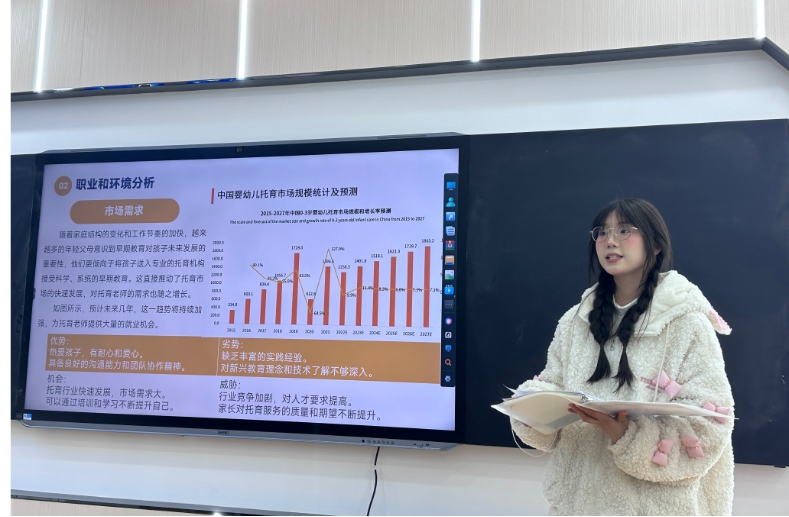 为增强大学生职业规划意识,指导大学生及早做好就业准备,以择业新观念打开就业新天地,促进大学生高质量充分就业121日晚,学前教育学院在行知701教室举办大学生职业规划大赛院级选拔赛,由学院团总支书记、辅导员代表担任本次比赛评委