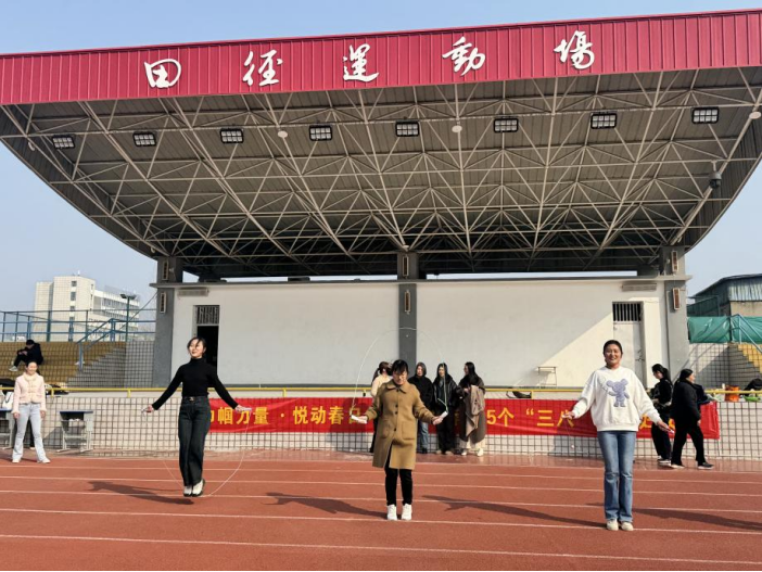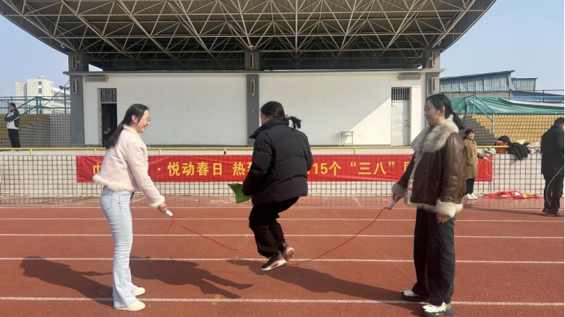 为庆祝第115个“三八”国际妇女节,丰富学前教育学院女教职工课余生活,缓解工作压力,激发青春活力,提升身体素质,增强团队凝聚力,3月7日下午,学前教育学院在操场举办庆祝“三八”国际妇女节跳绳活动,学院全体女教职工参与。