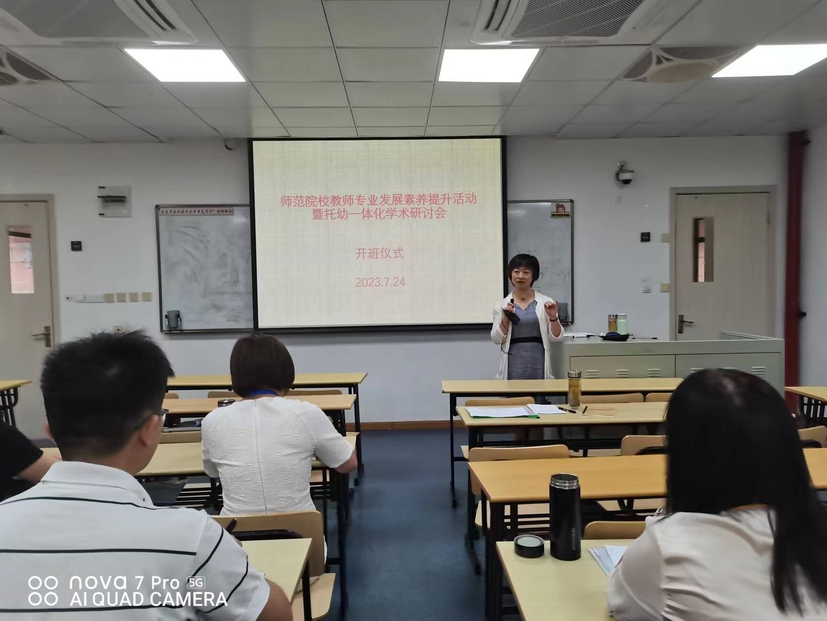 为提升教师专业能力,促进学院专业与课程建设,7月23日-29日,学前教育学院成功举办2023年暑期教师专业素养提升培训。本次活动由学前教育学院、学校联合办学单位亳州幼儿师专联合组织,上海师范大学学前教育学院(上海市学前教育学院)承办。两校教学管理人员、承担教学任务的校内专兼职教师共50人参加了本次培训提升活动。活动采用专题讲座、研讨交流、实地考察相结合的方式举行。