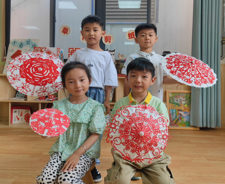 活动现场,同学们用生动的语言介绍了阜阳剪纸,并展示了她们精心制作的剪纸作品:伞、云肩、扇子、灯笼等,引起了小朋友们的连声惊叹。