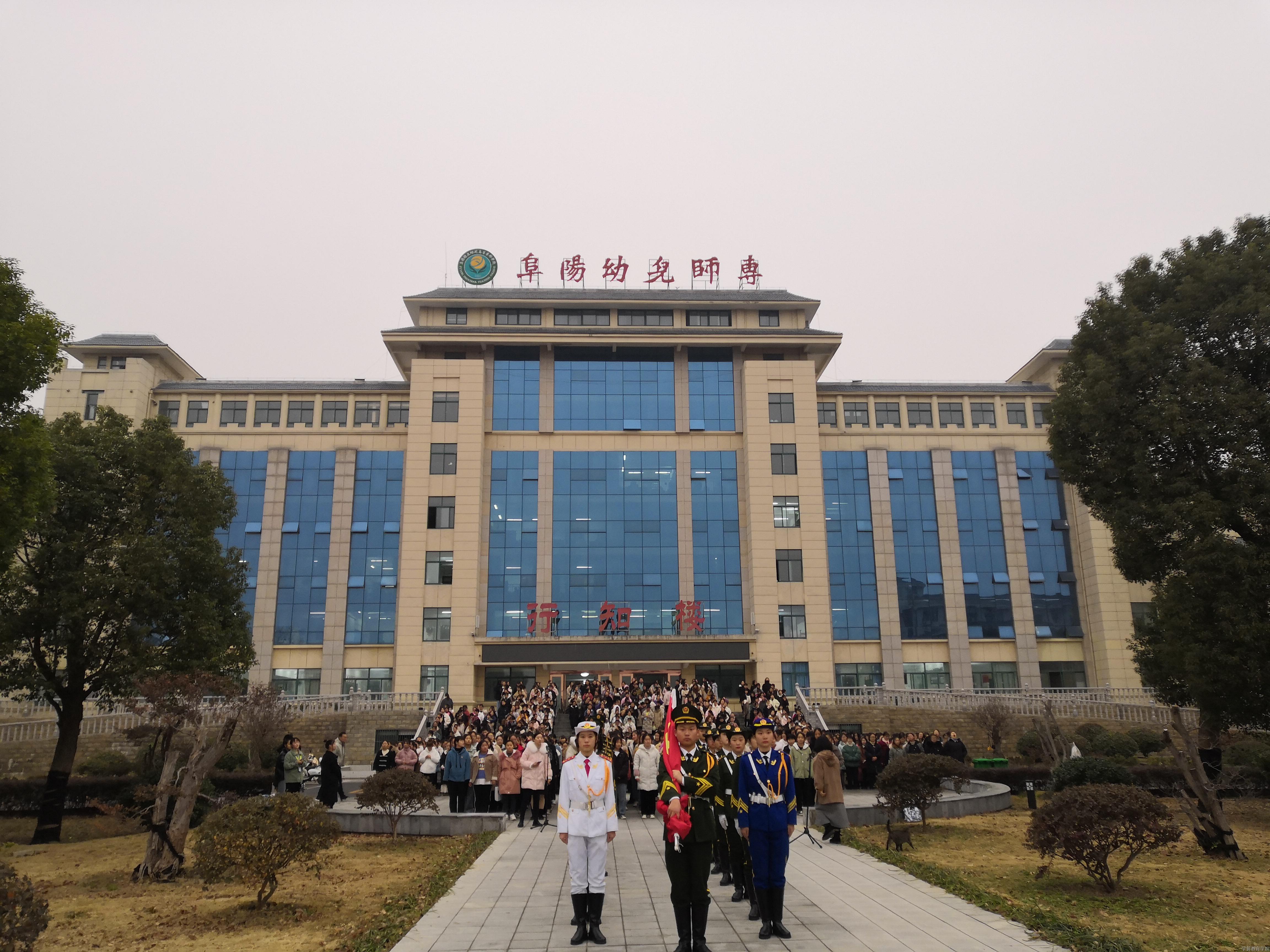11月2日清晨,阜幼专学前教育学院在行知楼南广场举行升旗仪式。学院党政负责人,辅导员、班主任,教师代表和学院各年级学生代表参加了升旗仪式。