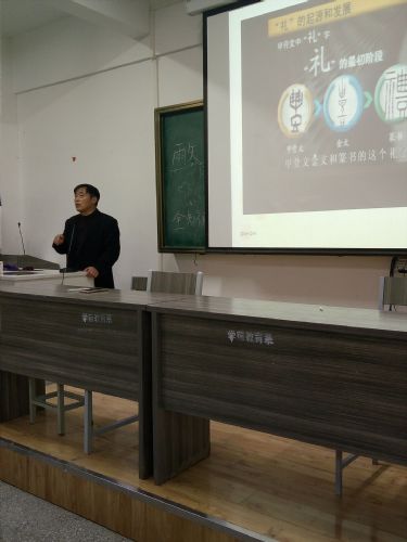 讲座开始,马老师从“知礼”、“懂礼”、“守礼”三个词的内涵进行分析,他通过“日本广岛奥运6万人观看散场后没有一片纸屑,而在中国天安门广场升国旗后地上便产生了一堆垃圾”等事例告诉学生,作为一名社会公民,我们的心中不能没有礼;作为一名未来的教师,更要以身作则,要为孩子树立良好的礼仪榜样。马老师向学生们展示了“礼”从古到今的各种写法,虽然“礼”的模样有了诸多变化,但它的内涵一直没有变化。马老师还讲述了礼的渊源以及礼貌、礼节、仪表、仪式的区别,从而让同学们获知了“礼”字的深奥意义,以及礼仪中的两个法则:黄金法则和白银法则,了解到礼仪的核心“道德就是良心,礼仪就是尊重”。
