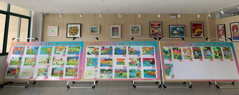为提高2022级学前教育专业学生的美术基本技能,调动学生的学习积极性,进一步巩固与夯实同学们的专业技能基础,在六一儿童节到来之际,学前教育学院举办了"童心向阳"儿童水彩笔画作品展。