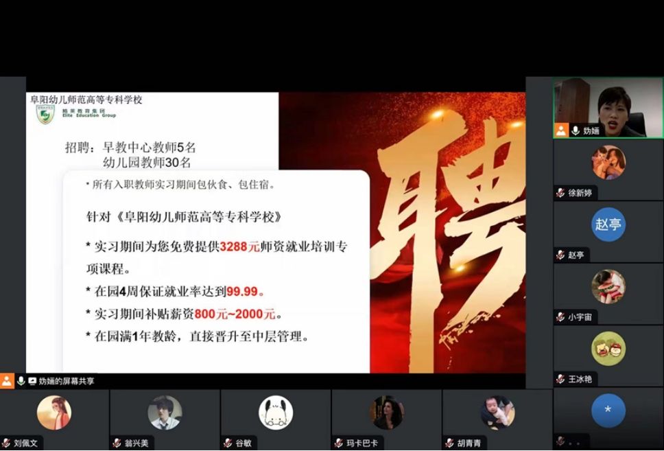 为进一步了解用人单位需求,深度了解就业形势,促进2024届毕业生高质量就业,学前教育学院于4月1日晚上8点联合合肥精英教育集团举办线上专场招聘会,学院就业工作负责人张凌艳、毕业班辅导员(班主任)及2024届毕业生参加。