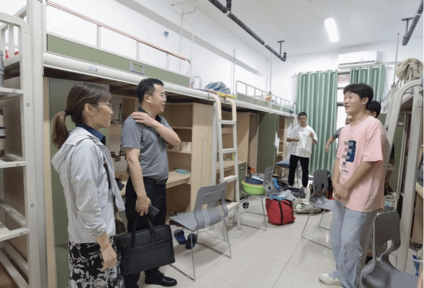7日下午5点,学院负责人张军强、党总支书记张凌艳带领着新生辅导员(班主任)走访了新生寝室,与他们交流,了解报到后的适应情况,叮嘱同学们要珍惜宝贵的大学时光,尽早制定好自己的大学规划,同时鼓励同学们积极参与学校、学院的各种集体活动,培养兴趣爱好,激发自身特长和潜能,以良好的精神面貌快速融入大学的学习和生活中来。