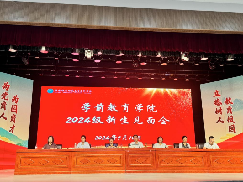 9月10日上午,学前教育学院在校演艺大厅召开2024级新生见面会。学院负责人张军强、党总支书记张凌艳及领导班子成员、各教研室主任、2024级辅导员等人员出席了大会。会议由副院长李桂玲主持,全体2024级新生参加了此次见面会。此次见面会旨在帮助学院2024级新生更加深入了解学院的办学理念、师资队伍、新版人才培养方案,引导同学们顺利融入大学生活,进行职业规划,明确在校学习成长目标。