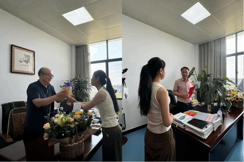 支部党员教师与学生们一起欣赏了手工作品,对他们的作品赞不绝口,鼓励他们珍惜学习时光,加强技能训练,真正成为一名合格的学前教育工作者。同学们倍受鼓舞,将自己做的作品送给了学校领导及学院老师们,并献上了自己真挚的祝福。