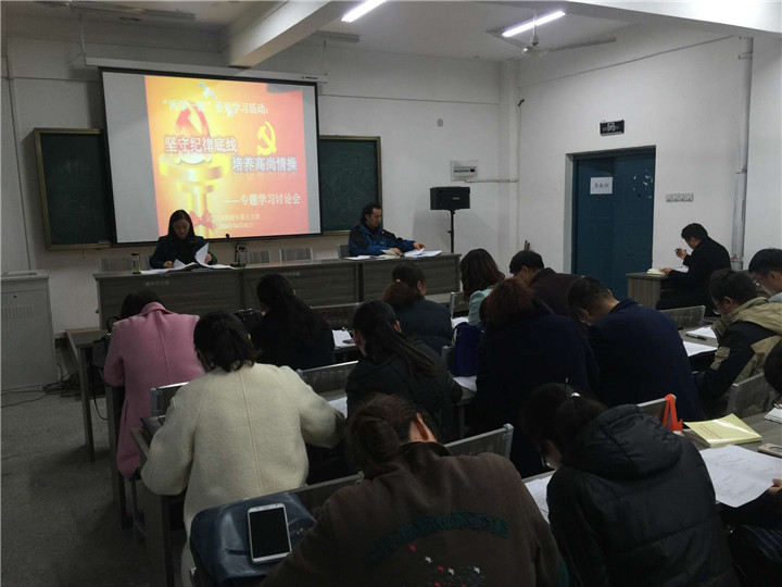 为深入推进“两学一做”学习教育,促进党员增强纪律意识,培养高尚情操,10月27日下午,中共阜阳幼专第五支部在学前教育系会议室举行“坚守纪律底线,培养高尚情操”专题讨论会,会议由支部书记钱友莲主持,校党委书记汤志和第五支部全体党员参加了讨论。