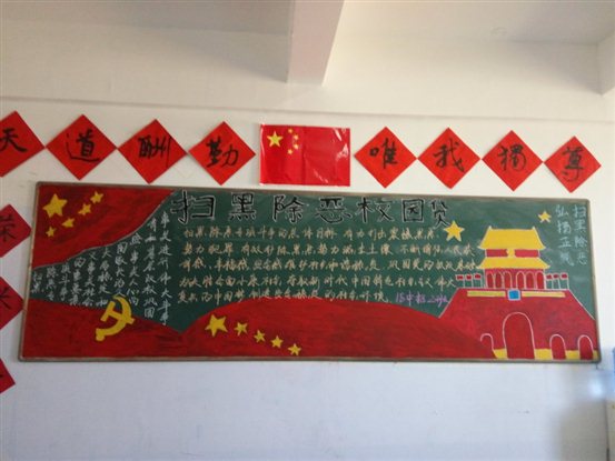 该次黑板报内容强调了扫黑除恶的重要性和黑恶势力对学生的危害。为加深同学们的印象,其中还介绍了该类黑恶暴力的危害,内容大致包括:黑恶势力,校园暴力,校园贷,毒品危害。内容以图绘线条和文字的形式展现,让我们对扫黑除恶、校园暴力、非法校园贷以及对毒品有了更深入的了解。数据显示,染上这些不良作风的原因主要是因为学生自制力差,过度追求高端物品所导致的,这些大多以热潮事物为载体,总是让学生迫不及防。也让同学们对黑恶势力有了不同程度的理解。