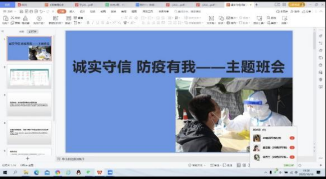 为深入贯彻落实习近平总书记关于新型冠状肺炎疫情防控工作的重要讲话指示精神,弘扬诚实守信的中华民族传统美德,把疫情防控工作的部署落实、落细,切实加强师生的诚信教育,保障广大师生的生命安全和身体健康,根据校学生处《关于开展“诚实守信,防疫有我”主题宣传教育活动的通知要求》(学[2022]68号),自10月14日起,学前教育学院以班级为单位,开展了“诚实守信,防疫有我”主题宣传教育活动。
