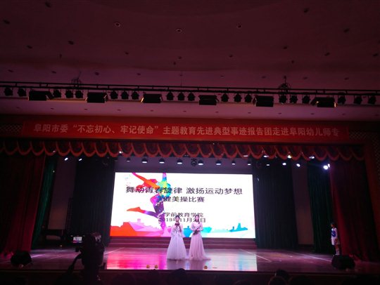 “舞动青春旋律 激扬运动梦想 ”,为丰富我院校园文化生活,培养大学生的艺术情操,强化大学生创新意识以及全面推动健康中国建设的实施, 11月21日下午6:30,阜阳幼儿师范高等专科学校由学前教育学院举办的大学生校园健美操比赛在德馨楼汇演厅顺利举行。