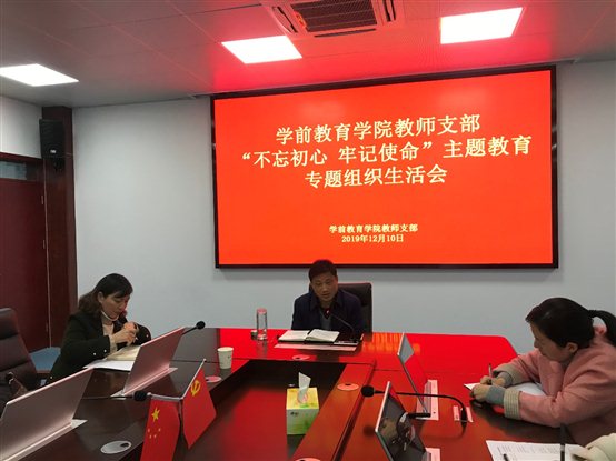 根据学校“不忘初心、牢记使命”主题教育领导小组办公室安排部署,按照学校关于认真开好“不忘初心、牢记使命”专题组织生活会的通知要求,12月9日,学前教育学院教师党支部召开了“不忘初心,牢记使命”专题组织生活会,教师支部全体党员到会参加,支部书记钱友莲主持,校长汤志同志参加了本次会议。