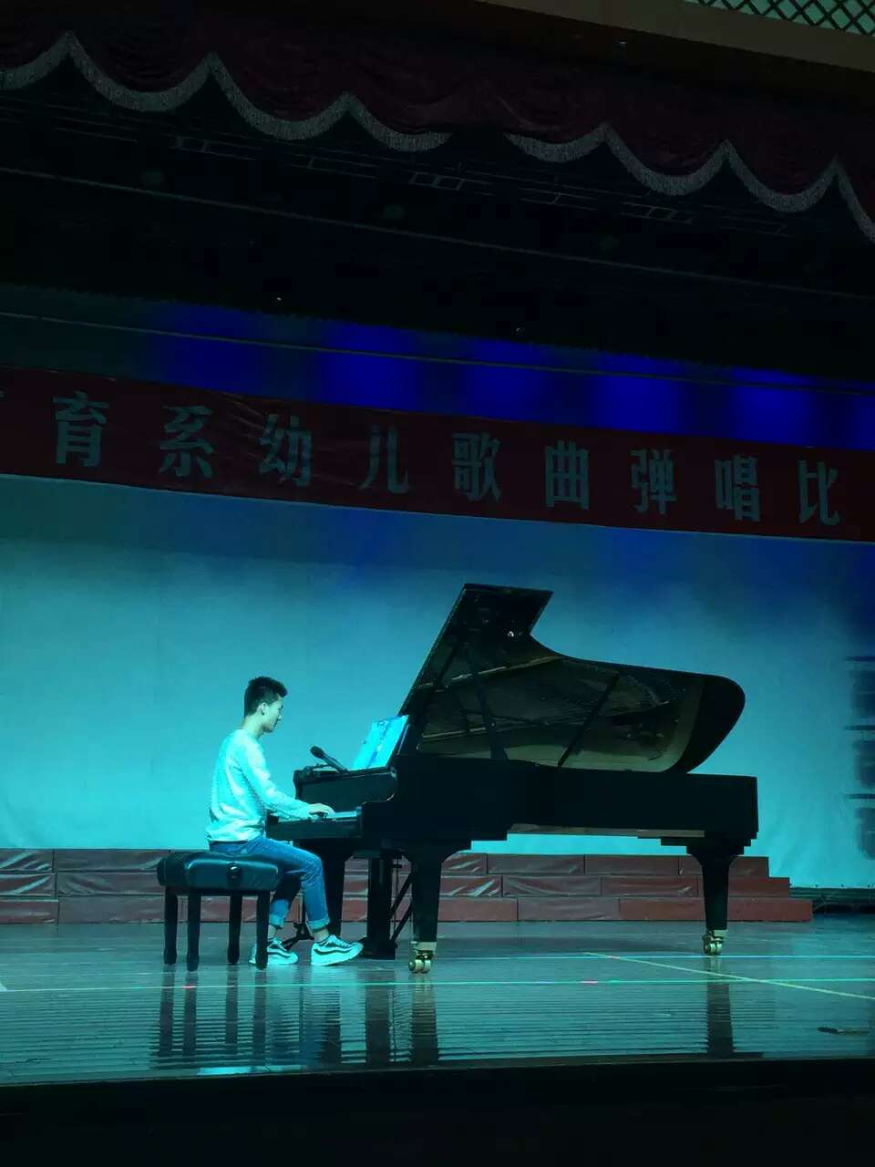 比赛内容分为弹唱自选曲目和抽签曲目两种,选手们通过抽号决定上场顺序。比赛时,选手们充分展现了自己扎实的基本功,积极投入,弹唱更是十分动听。选手们在比赛中充分展示了各自的钢琴演奏技巧和演唱水平,一曲曲悠扬的曲目随着参赛选手的手指从钢琴里溢出,伴随着悦耳的歌声久久回荡……