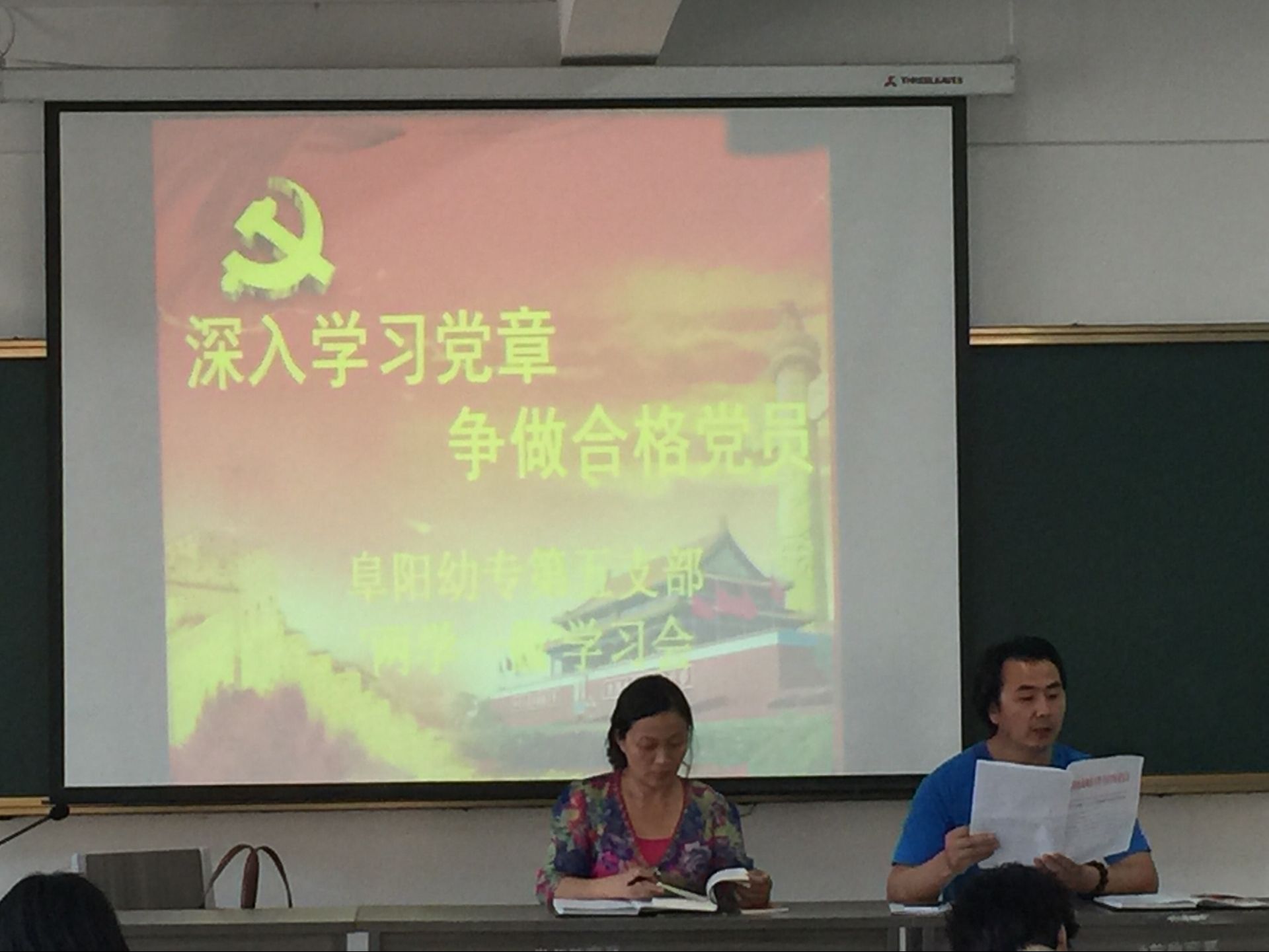 2016年6月16日中共阜阳幼专第五支部举办了“两学一做”集中学习活动,支部党员共计32名,除两位同志产假,一位同志事假,其余29位党员全部参加了本次学习。
