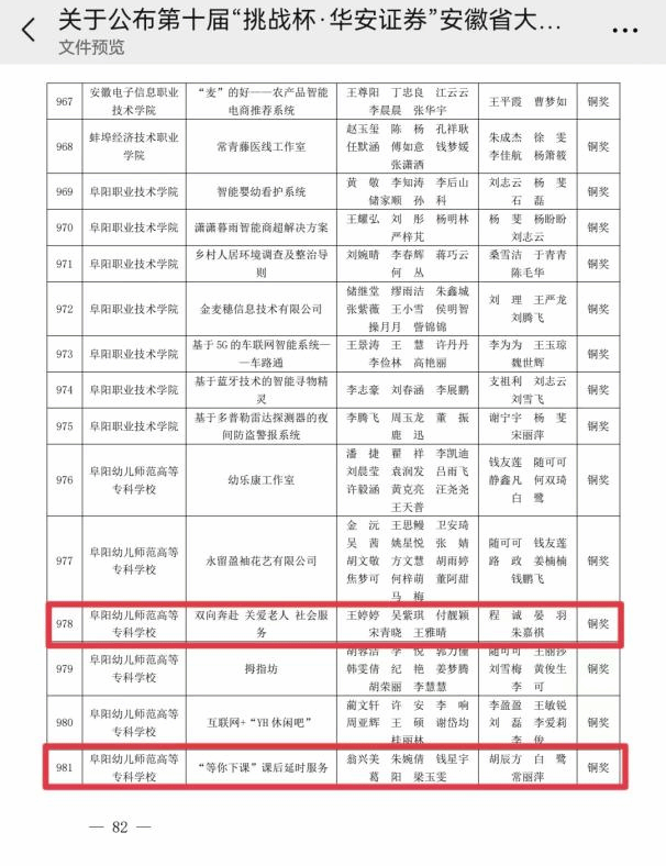 安徽省大学生创业计划竞赛获奖名单