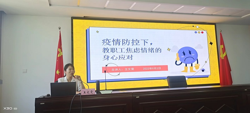 本次培训特邀阜阳师范大学信息工作学院大学生心理健康教育中心负责人王文雯老师从辅导员班主任工作现状、焦虑原因及如何应对等方面为大家讲解有关缓解焦虑情绪方面的讲座。
