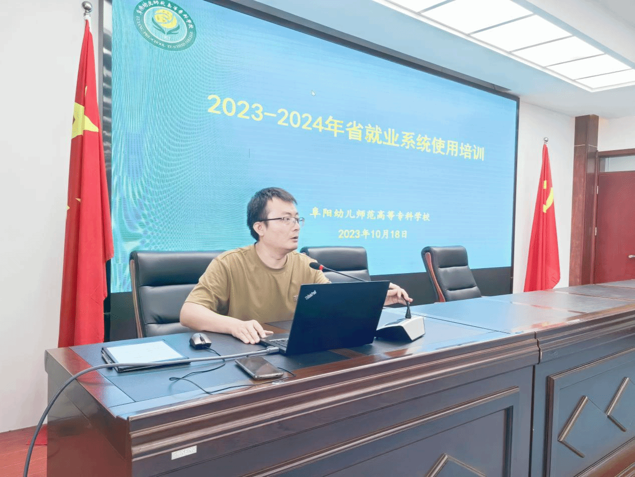 2023年10月18日,我校召开2023-2024学年安徽省就业系统使用培训会,会议由学生处(就业处)副处长白黎主讲,各学院就业管理员、2024届毕业生辅导员和联合培养学校相关人员参会。