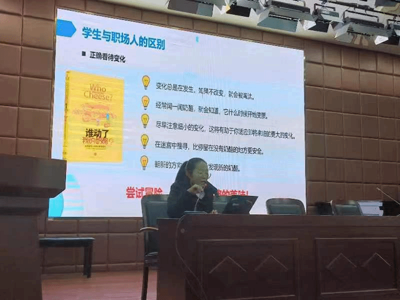 活动现场,报告人程诚分享了初入职场的经验和见解,强调了适应职场环境、建立人际关系、提高工作技能等方面的重要性,并为在场的学生和职场新人提供了实用的建议。