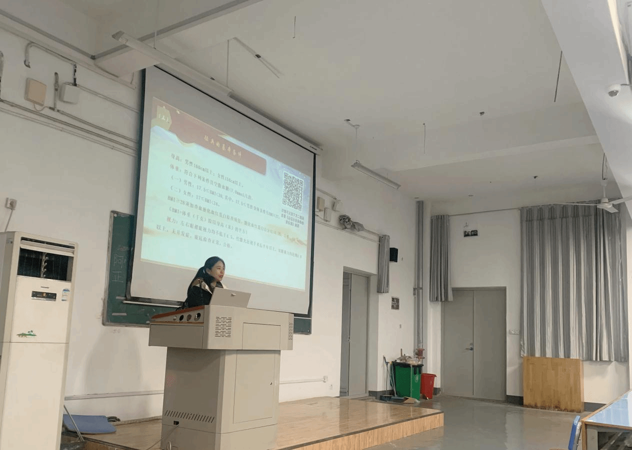 讲座中,王清晨以《青春有梦 强军有我》为题,介绍了2023年征兵政策的变化,重点就报名及体检时间、入伍条件、优惠政策等作了详细解读。她还与现场同学深入交流,回答了同学们提出的入伍去向、个人发展以及退役安置等问题,鼓励大家响应党和国家号召,踊跃报名参军,携笔从戎,把远大的爱国之志变成笃实的爱国之行。此次讲座激发了学生浓烈的爱国热情,增强了学生对应征入伍重要性的认识,强化学生在当代的责任感和使命感。