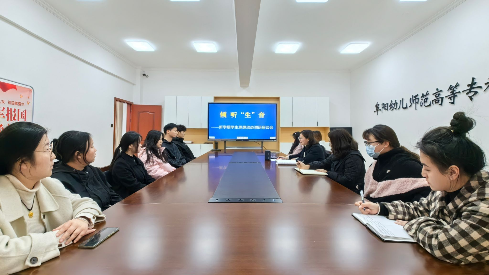 为掌握开学初期学生思想动态,了解学生学习生活状况和关切诉求,提高学校思想政治教育工作实效性,3月13日,学生处(就业处)组织开展2024年春节学期学生思想动态调研座谈会,各学院辅导员、学生代表参加,学生处(就业处)副处长胡文丽主持会议。