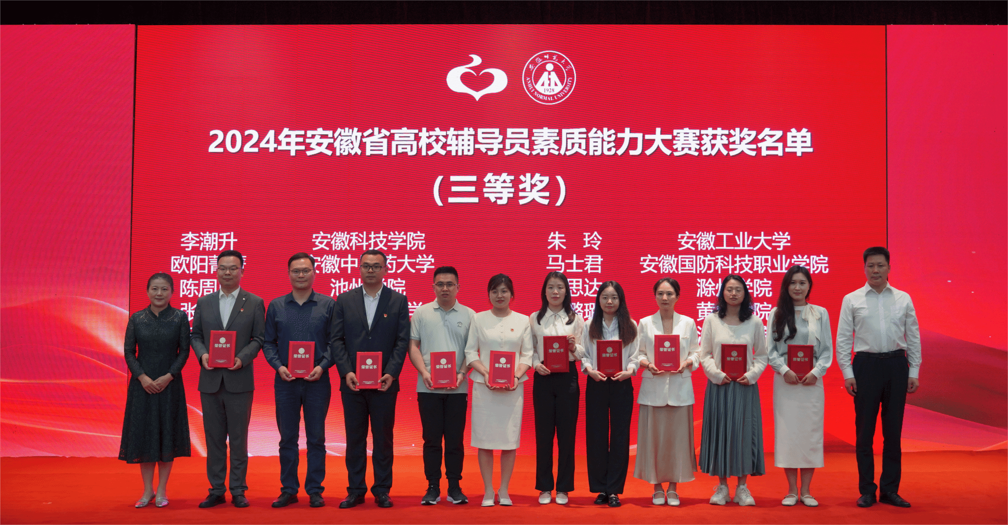 近日,安徽省高校辅导员素质能力大赛在安徽师范大学顺利举行,我校专职辅导员随可可老师参加,并荣获三等奖。