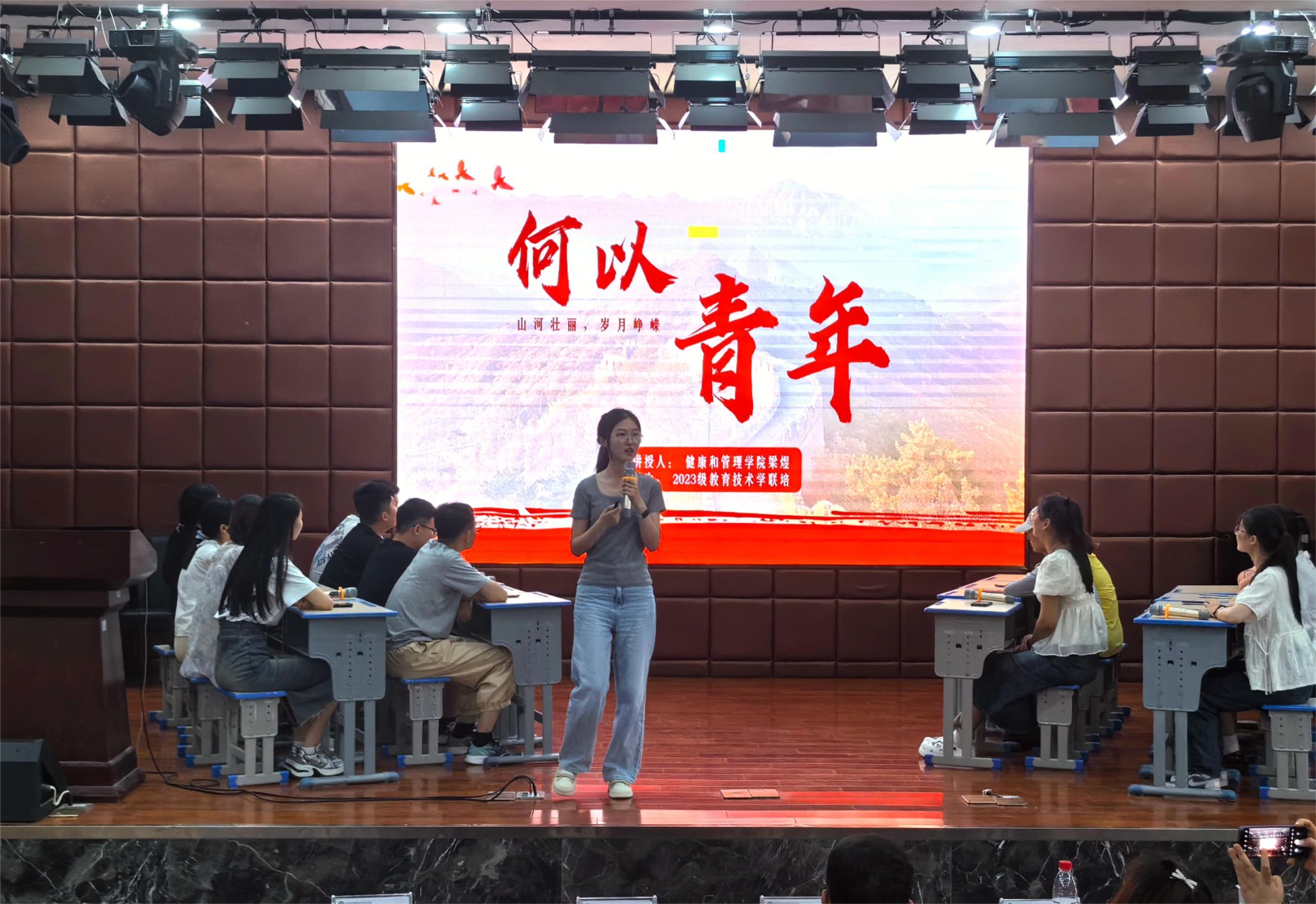 专职辅导员胡雪丽、姜琳娜、梁煜、常遇春分别围绕“弘扬精气神,绽放青春光彩”“拒绝考试焦虑”“何以青年”“我在大学里,如何不迷茫”等主题进行班会活动展示,利用短视频、互动游戏、提问探讨等方式调动学生积极性,引导学生树立青年远大理想,学会处理学业和生活相关问题,保持良好青年大学生奋发状态。四场班会主题鲜明、内涵丰富,紧贴时代和大学生学习生活,学生参与度高、卓有成效。