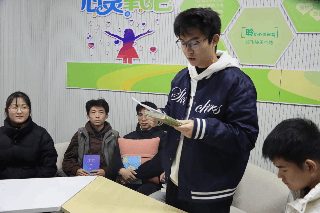 本次读书分享会邀请到四位同学分享读书心得。来自24大数据1班的王智豪同学为大家分享《老人与海》这本书,他深情地讲述书中人物不向命运低头,永不服输的斗士精神和积极向上的乐观人生态度。对这本书的内容简单介绍后,他分享了自己的感悟:在人生的道路上,我们可能会遇见各种各样的困难和挑战,但只要我们坚持下去,永不言败永远保持乐观积极的态度,就能够战胜困难,实现自己的人生价值。