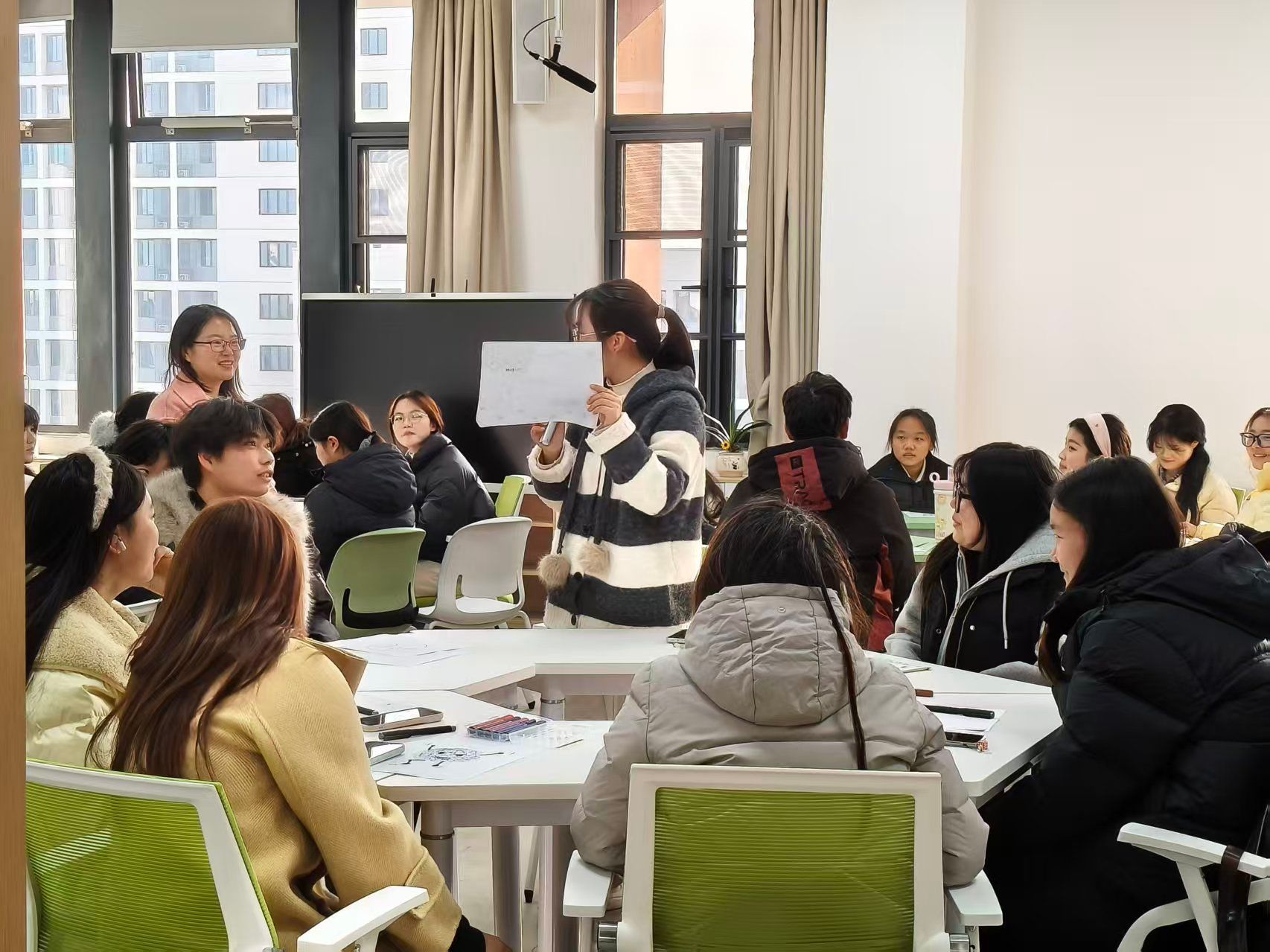 本次培训聚焦心理委员的核心职责与工作方法,内容充实、形式生动。培训上半场,朱龙凤老师以“团体心理辅导的设计与开展”为题,系统阐述团体心理辅导的理论基础、活动设计原则及带领技巧,通过案例分析使抽象理论变得直观可感。下半场,李娜老师围绕“如何开好心理健康班会”进行分享,她从主题选定、流程设计、氛围营造到常见问题应对,提供了详实且可操作的“工具箱”。整个培训过程并非单向讲授,老师们巧妙设置了互动体验环节,引导同学们在亲身参与中领悟知识要点,现场气氛积极而热烈。