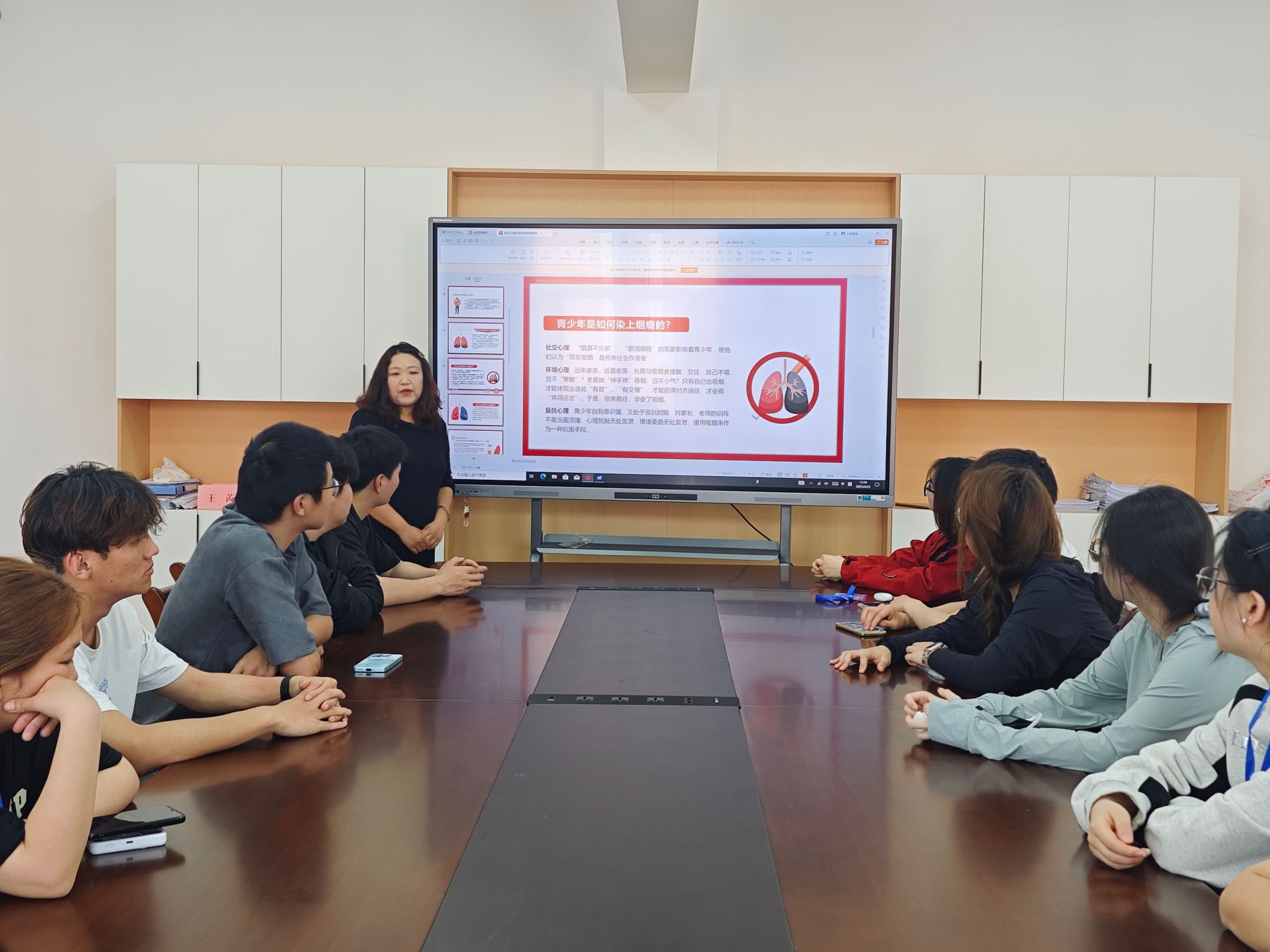 为贯彻落实相关部门“严格限制在高等学校内吸烟”工作要求,推进学校无烟校园专项行动,4月23日,“一站式”学生社区宿管阿姨小课堂开课,邀请宿管中心工作人员刘莹主讲。