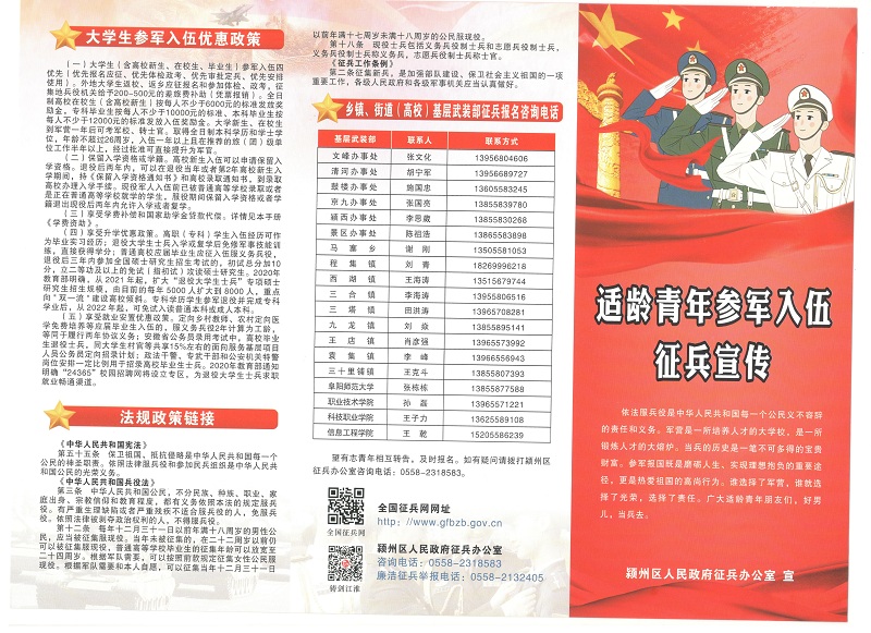 适龄青年参军入伍征兵宣传——颍州区人民政府征兵办公室