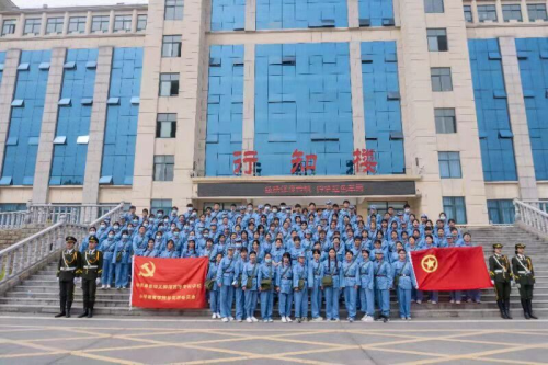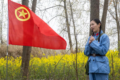 在四九革命纪念碑前,辅导员组织学生列队肃立,现场奏唱《中华人民共和国国歌》。国歌唱毕,全体师生脱帽,向烈士默哀。接着大家为革命先烈敬献鲜花,深切表达对烈士的崇敬之情。总支副书记魏琳上前领誓,全体党员、发展对象和入党积极分子高举右拳,面向鲜艳党旗庄重宣誓:“我志愿加入中国共产党,拥护党的纲领,遵守党的章程……”声音铿锵有力,激荡在纪念馆上空。