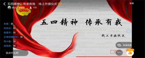 五月十一号早上7.00整,语言文学系全体学生,都不约而同地打开线上直播,跟随学生代表,进行升旗仪式。大家在学生代表的带领下,一起共唱国歌,重温誓词,更深刻地了解五四运动,为五四精神而震撼。然后班级学生代表进行发言,针对近期疫情防控,以及在防控工作中青年志愿者的优良表现,体现的无私奉献精神表现大家的敬意。不仅如此,一些班级班长还准备了一些关于五四运动的小知识,通过问答方式,让大家更好地理解体会当时的风貌。学生们都踊跃发言,各有见解,通过回答,我们可以从中体会到爱,对祖国民族的爱。接下来,教师代表进行发言,深情地讲述着曾经的他们挥洒汗水,并祝愿如今的我们放飞梦想,激扬青春,鼓励学生们努力学习,提高专业水平知识,全面提升素质,是自己获得更好的进步,并懂得奉献社会,回报祖国。