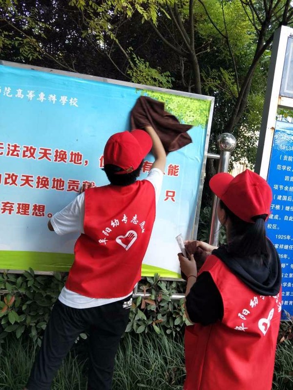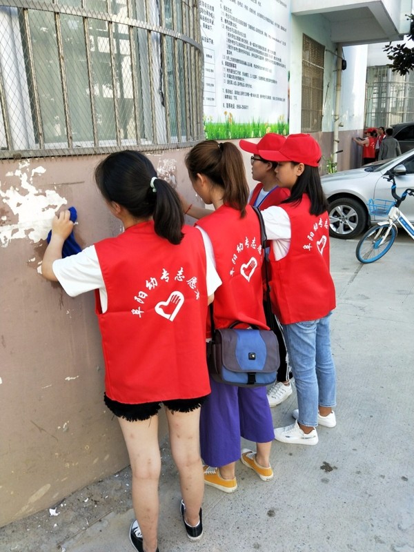 因近期我校小广告日益增多,在校团委老师的领导下我校青年志愿者协会与2018年6月14日下午举行了清理校园小广告活动。