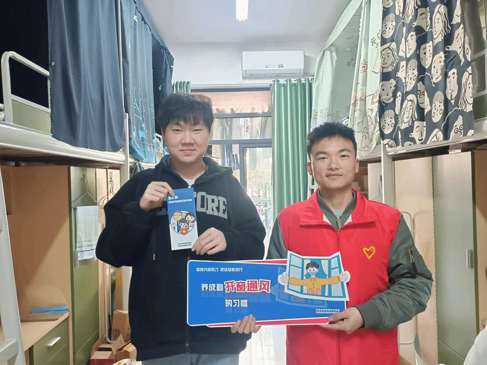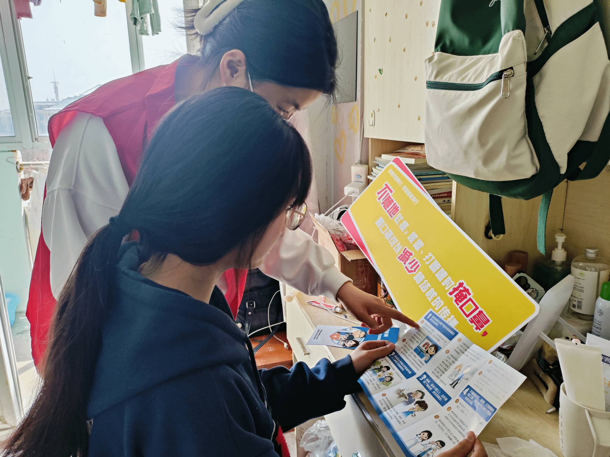 活动期间,志愿者们身穿红色马甲,采用分发宣传单等形式深入学生寝室进行结核病防止宣传。志愿者们详细地向同学们介绍了结核病的传播途径、常见症状、预防方法和治疗措施等相关知识,进一步加深了他们对结核病的理解和认识。同时提醒同学们要增强自身抵抗力,多运动多开窗通风,酒精消毒也很有必要,珍爱自己的健康,增强自我防护意识。