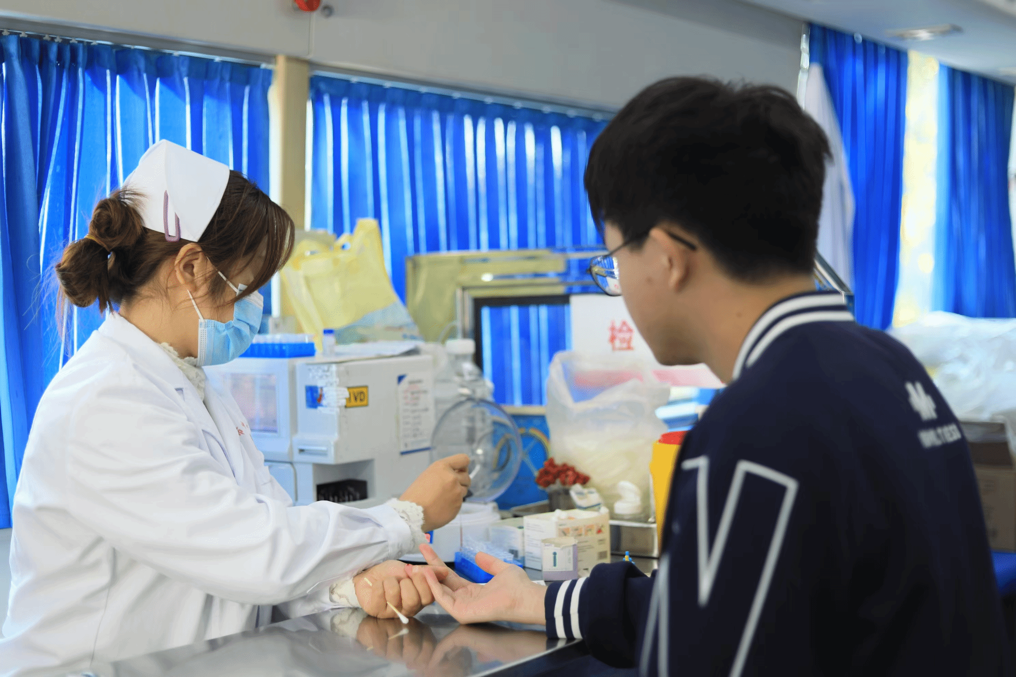 本次活动旨在弘扬无偿献血精神,传递爱心与希望,为公益事业贡献一份力量。在献血现场,来自阜阳市中心血站的医护人员为师生们提供了专业的指导和服务。她们耐心地为每位献血者讲解献血的意义、流程以及注意事项,确保献血过程的安全和顺利。同时,志愿者们也为献血者提供了贴心的服务,如递送热水、协助填写表格等,让献血过程更加温馨和舒适。