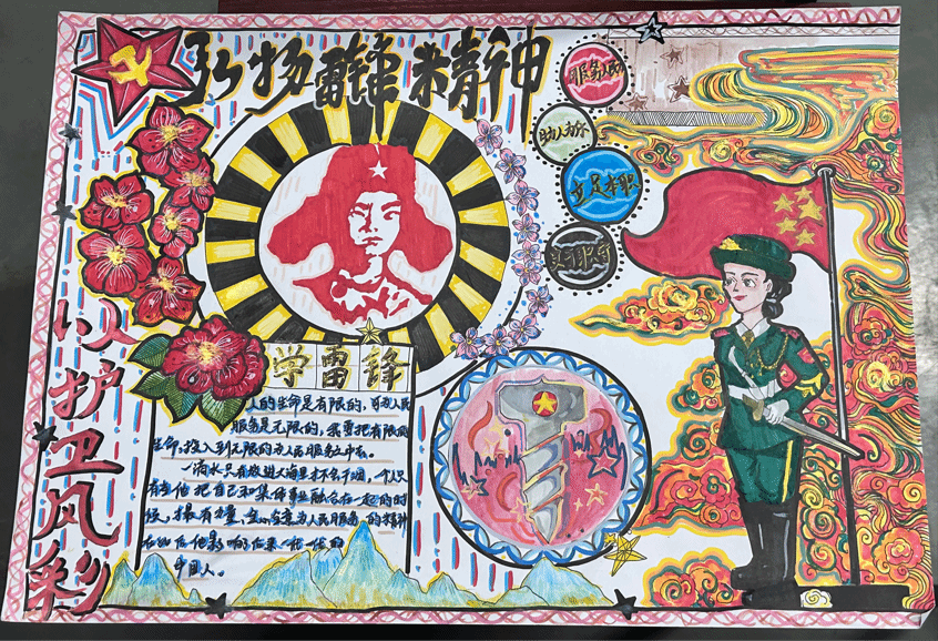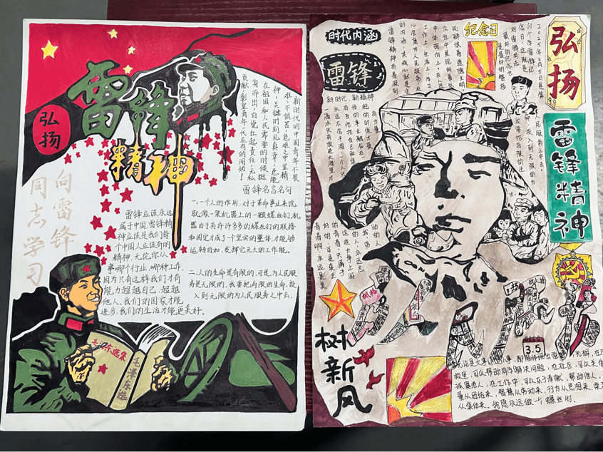 三月是属于雷锋,校国旗队为弘扬雷锋精神,传承红色基因,开展了一场意义非凡的雷锋月手抄报活动。此次活动吸引了众多学生积极参与,大家用手中画笔,绘出对雷锋精神的理解与传承。