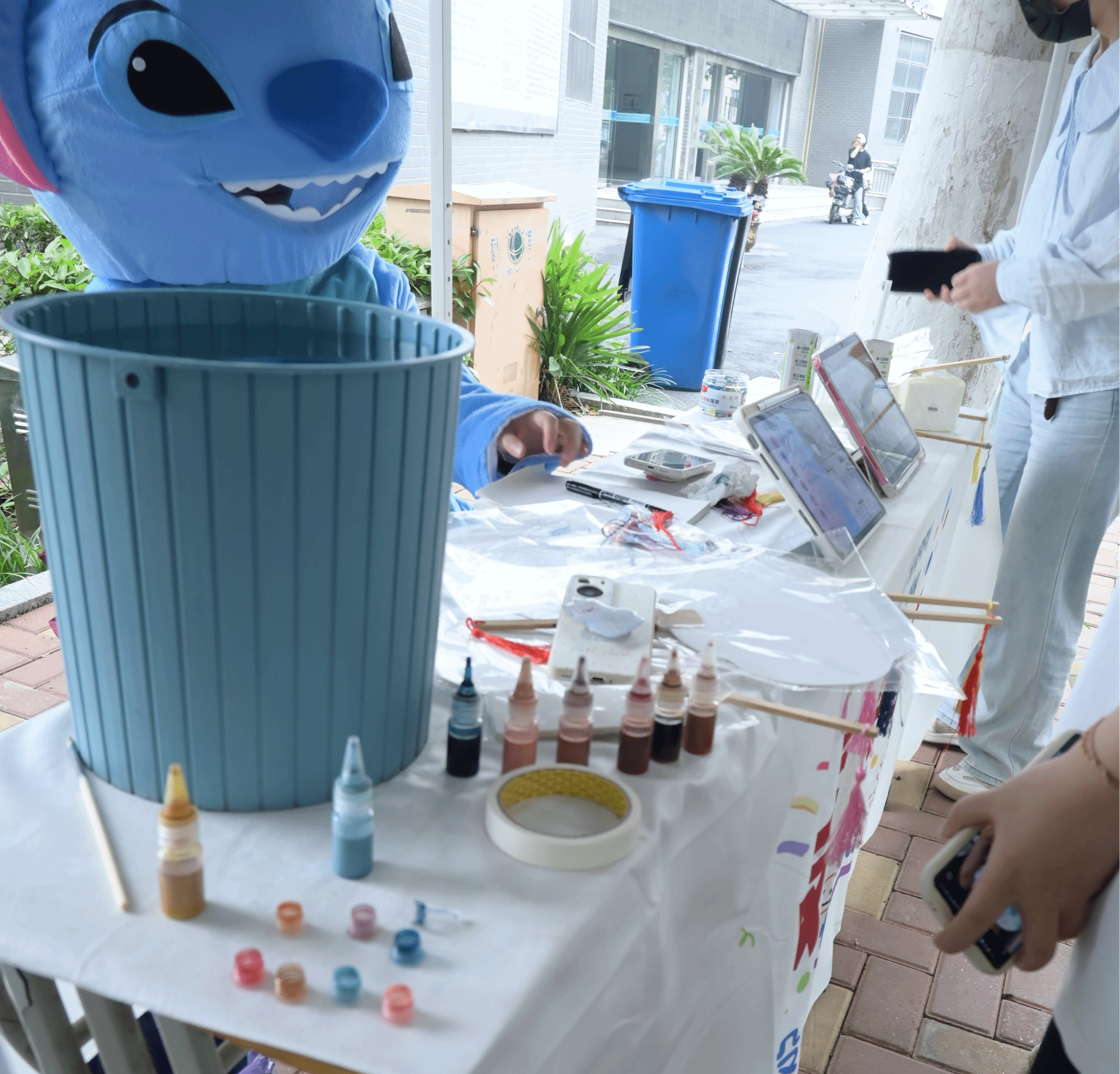 林荫道两侧的摊位各具特色,三大主题区域交织出别样风景。在匠心工坊的"非遗体验区",非遗漆扇制作摊位前人头攒动,排起了长龙。学生们在传承人的悉心指导下,小心翼翼地将天然大漆与璀璨金箔点缀于素色团扇之上,亲身体验着"漆艺千年"所蕴含的东方美学魅力。“手作时光"创意摊位上,手工摆件,挂件琳琅满目,部分作品现场接受定制,为师生提供"专属青春纪念品"。在“旧物新生"二手市集,毕业生们摆出闲置教材、手作玩偶等物品,学前教育专业学生将废旧布料改造成卡通教具,展现环保教育理念。