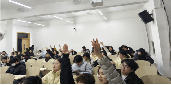 讲座结束后,竞赛环节正式拉开帷幕。本次竞赛采用举手抢答的形式,每位同学都有机会参与。题型聚焦讲座核心知识点,涵盖基础认知、应急处理等内容。主持人念题完成后,现场同学纷纷举手抢答,气氛热烈踊跃;被点到名的同学从容应答,还坦言到先听课再答题的形式很有效果,刚记住的知识点马上就能检验!现场不仅充满紧张又欢乐的竞赛氛围,更让结核防护知识在你追我赶的互动中高效传递,每一次举手、每一次应答,都是对自我健康责任的主动践行。