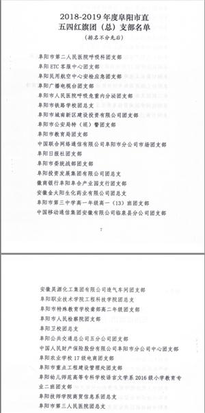 其中恭喜我校一六小学教育二班荣获2018- 2019 年度“阜阳市直五四红旗团支部”,恭喜强波同学荣获“阜阳市直优秀共青团员”。