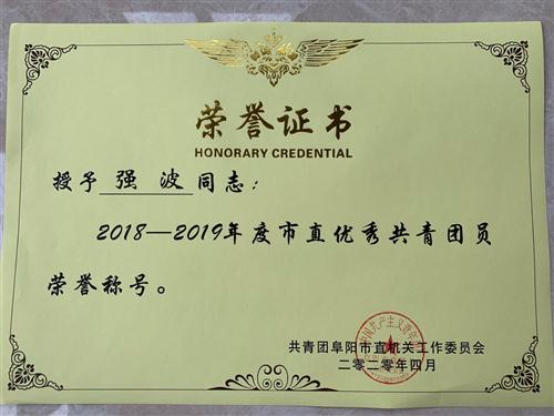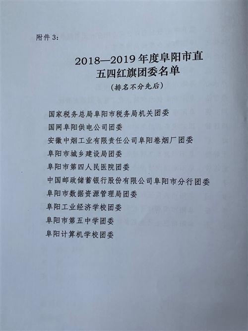 其中恭喜我校一六小学教育二班荣获2018- 2019 年度“阜阳市直五四红旗团支部”,恭喜强波同学荣获“阜阳市直优秀共青团员