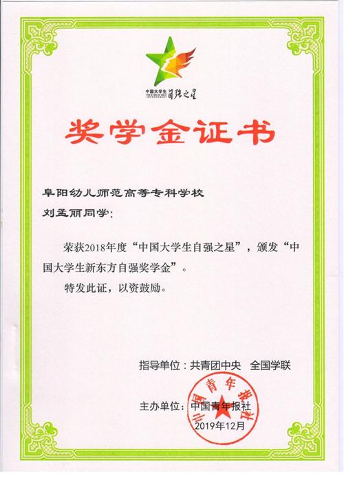 (我校刘孟丽同学荣获“2018年度中国大学生自强之星”)