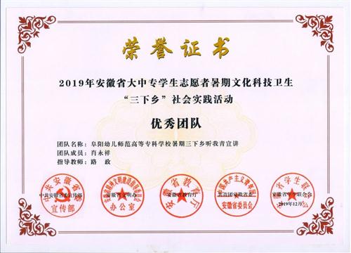 上一条: 喜报——我校16小学教育二班团支部荣获2019 年度“阜阳市先进团支部,肖永祥同学荣获"优秀共青团员"