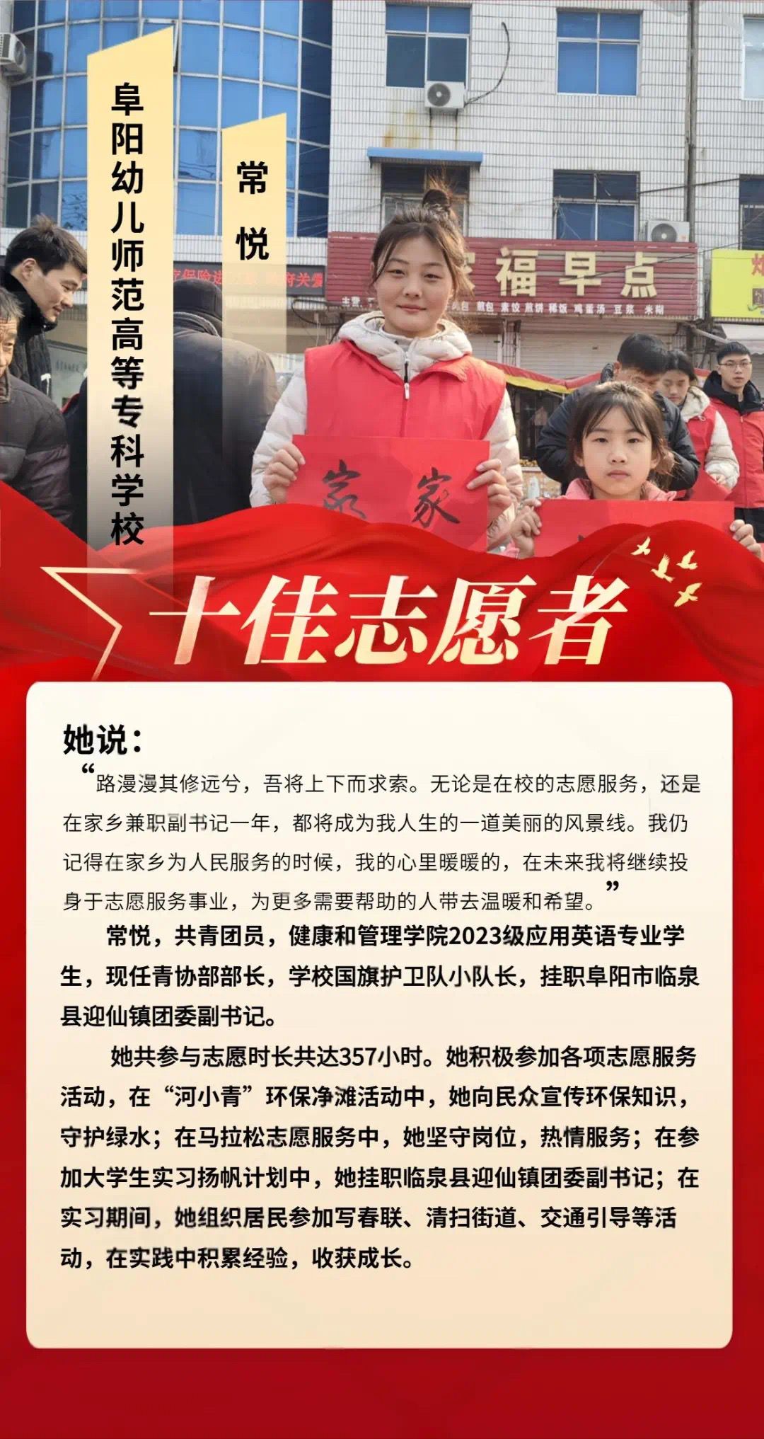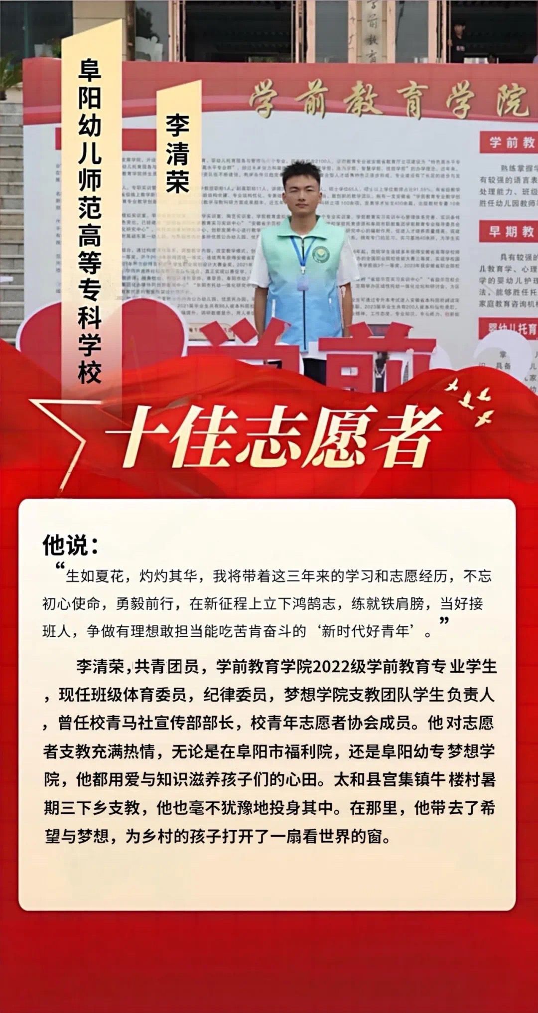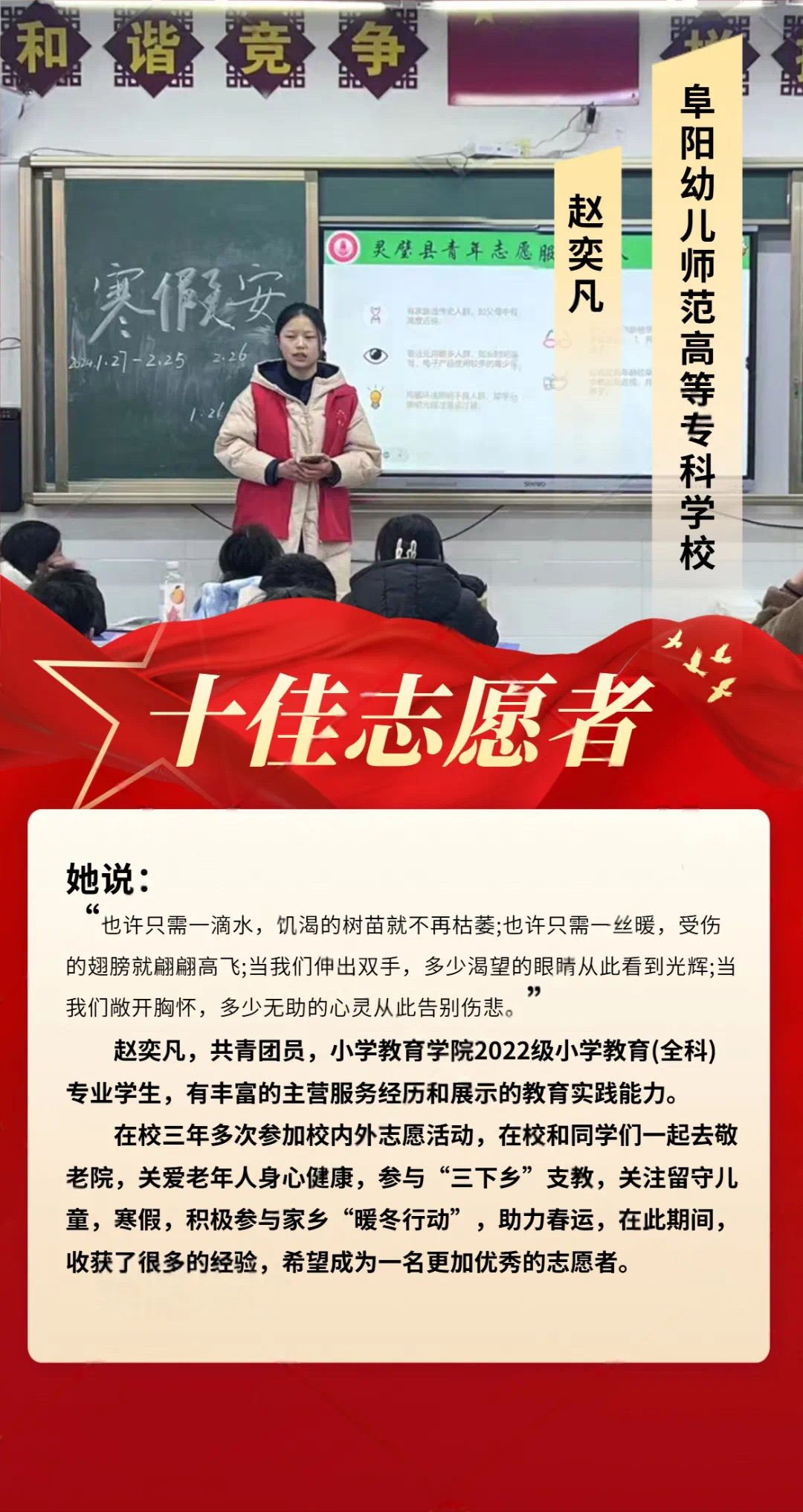 他们是青春热忱的践行者,脚步丈量奉献的温度。从支教课堂到社区服务,从环保守护到急救科普,十佳志愿者以微光点亮校园,用行动定义不凡。