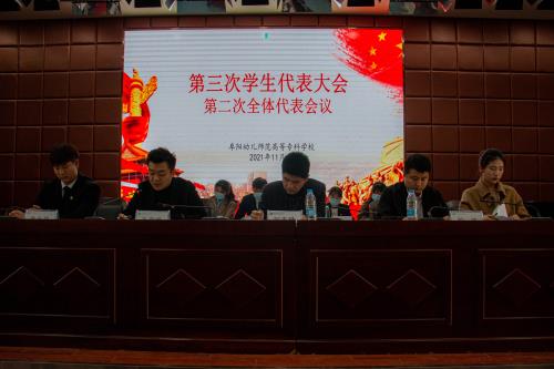 此次学代会审议通过《阜阳幼儿师范高等专科学校第三次学生代表大会代表资格审查报告》、审议通过第三次学生代表大会主席团成员名单(草案),审议通过大会秘书长名单(草案)、审议通过大会主要议程(草案)、听取并充分讨论了《阜阳幼儿师范高等专科学校第二届学生委员会工作报告》,听取各代表团对报告的修改意见,讨论并确定了校第三届学委会委员候选人建议名单,听取总监票人汇报选举情况。