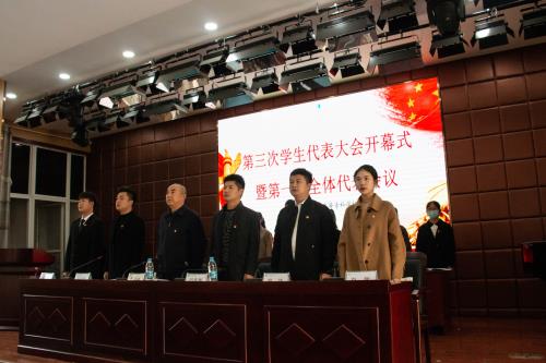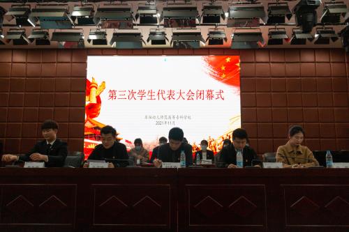 2021年11月3日,我校第三届学生代表大会在学术报告厅顺利召开。校党委副书记于华献出席大会并作重要讲话,校团委负责人刘志伟,执行主席肖永祥,学校各部门领导,主席团成员,学生会成员和各班学生代表出席此次大会。大会选举产生了田欣悦为主席团执行主席,朱传齐、陈欣婕、胡奥然、姚雅欣为主席团成员。本次学生大会展示了各部门的工作流程,明确了学生会的各项规章制度,帮助新成员更好的融入学生会这个大家庭。在充分了解学生会部分职能与运作机制的基础上,新成员们心怀梦想,力争上游,愿为校园建设、学生服务尽心尽力。